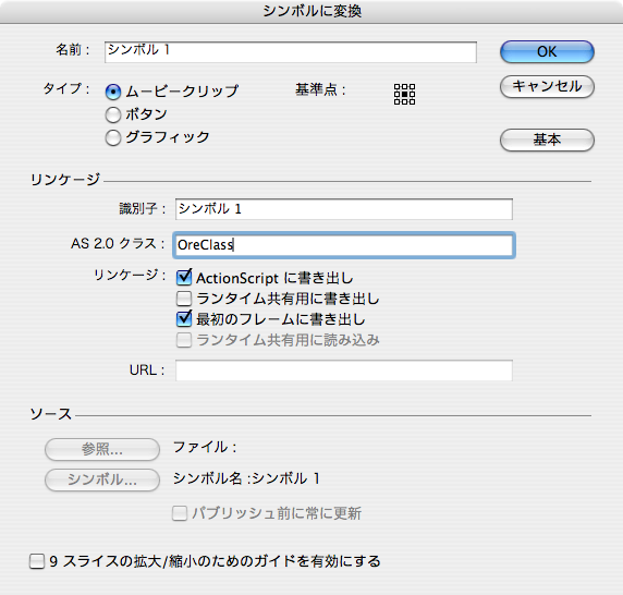 AS3.0 でもスクリプト内からインスタンスを生成しないのであれば、同じように Linkage の Class に俺クラス名を書けばいい。だけどスクリプト内で new してうんぬんて場合、これじゃダメだ。