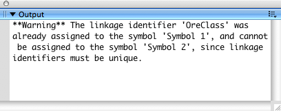 ↑ Symbol 1 と Symbol 2 に同じクラス OreClass を指定すると怒られる。linkage identifiers must be unique つったって linkage id は指定できねいべ。。。と思ったら、class 名が linkage id として使われてるのか。。