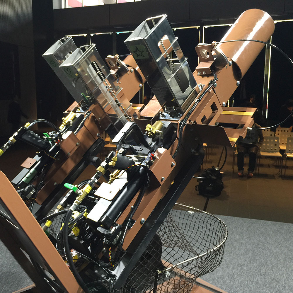 バズーカはもともと T シャツバズーカ (PDF) として存在していたものをベースに、ガス充填とかトリガーとか薬莢排出とかってのを自動化させたもの。MVN もすげえんだけど、このバズーカがいちばんすげえ。ちょーメカかっこいい。この 1 回でお蔵入りさせんのはもったいないなー。