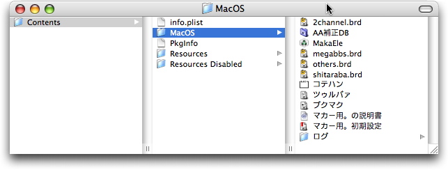 あー、そだ。過去のログとかどーすんだ?って人がいると思うですね。パッケージになっちゃってるのでマカー用。アプリの上で右クリック→パッケージの内容を表示、んで Contents/MacOS/ の中にこれまでのブクマクとかログとかをぶち込む、と。