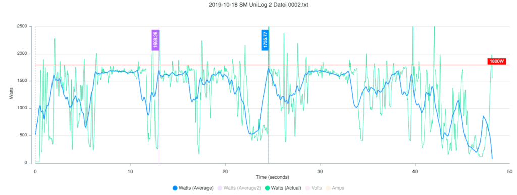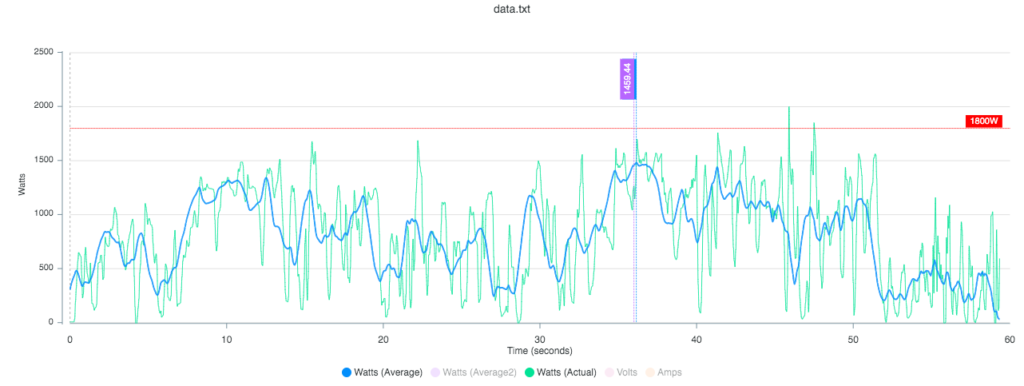 ↑これが Saqoosha の 2 日目の準々決勝シングルヒートのやつ。最大でも 1.46KW。全然スロットル入ってない。